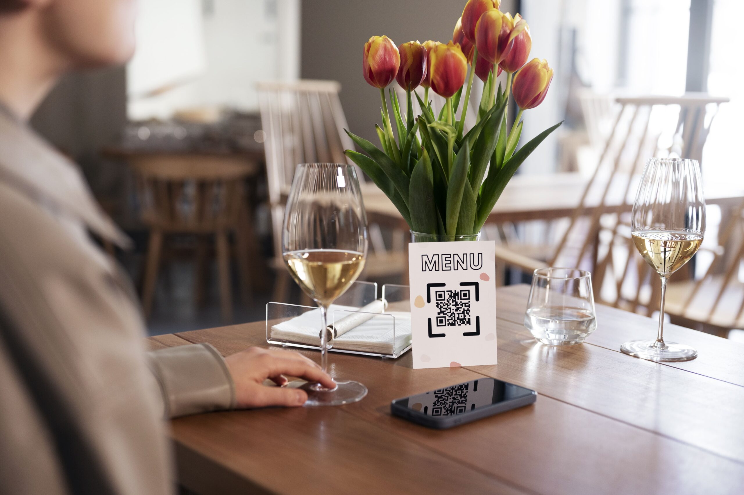 Uma tecnologia comum em cardápios digitais é a função de QR Code. O QR Code é um código de barras bidimensional que pode ser escaneado por smartphones para acessar informações.